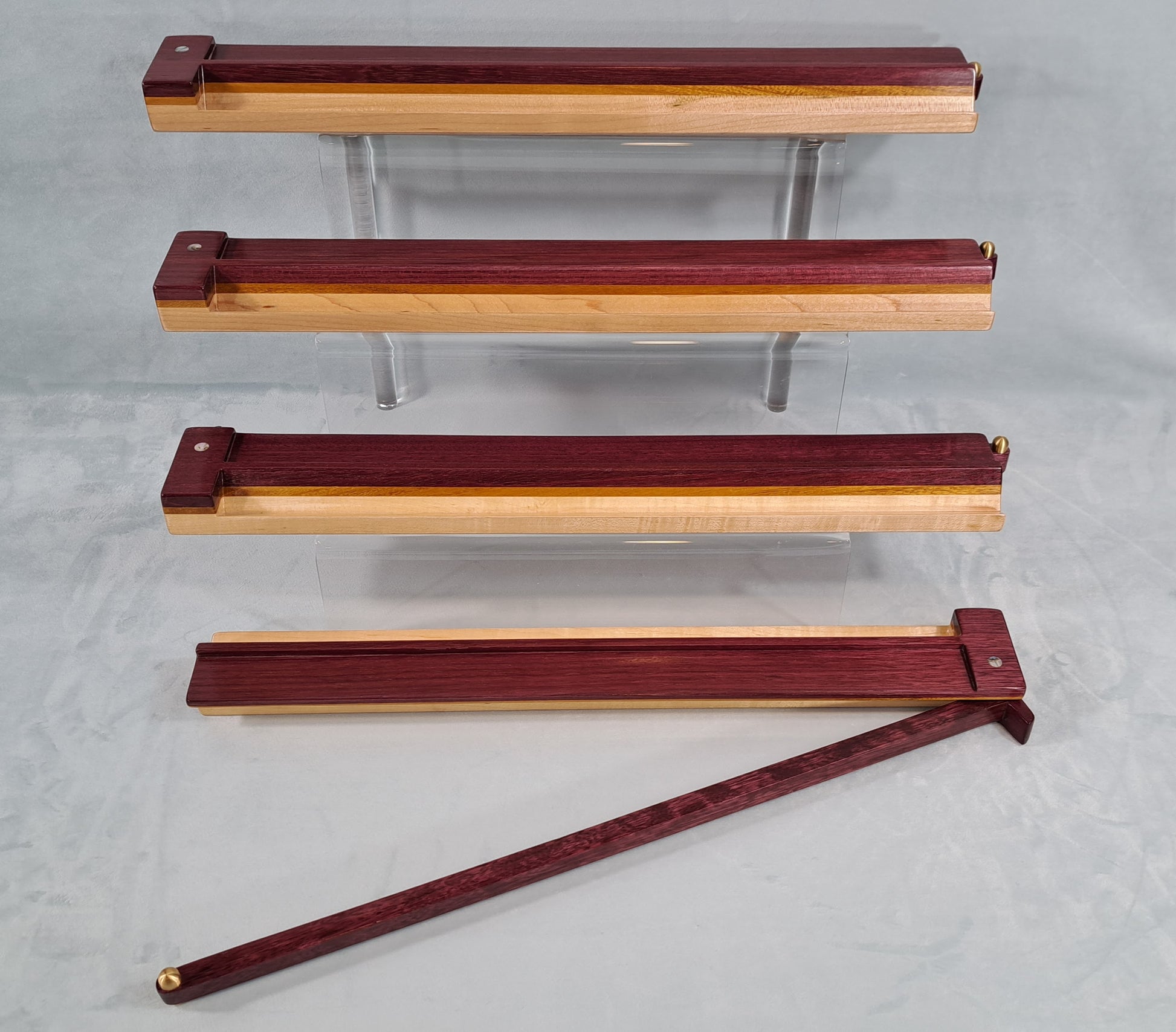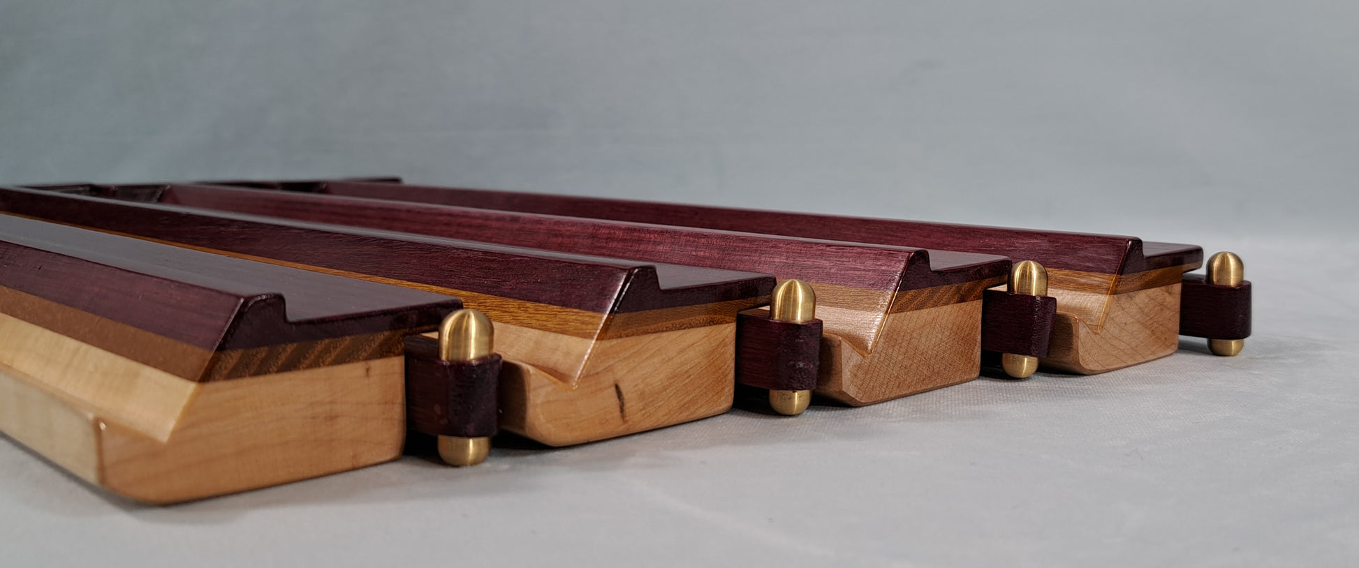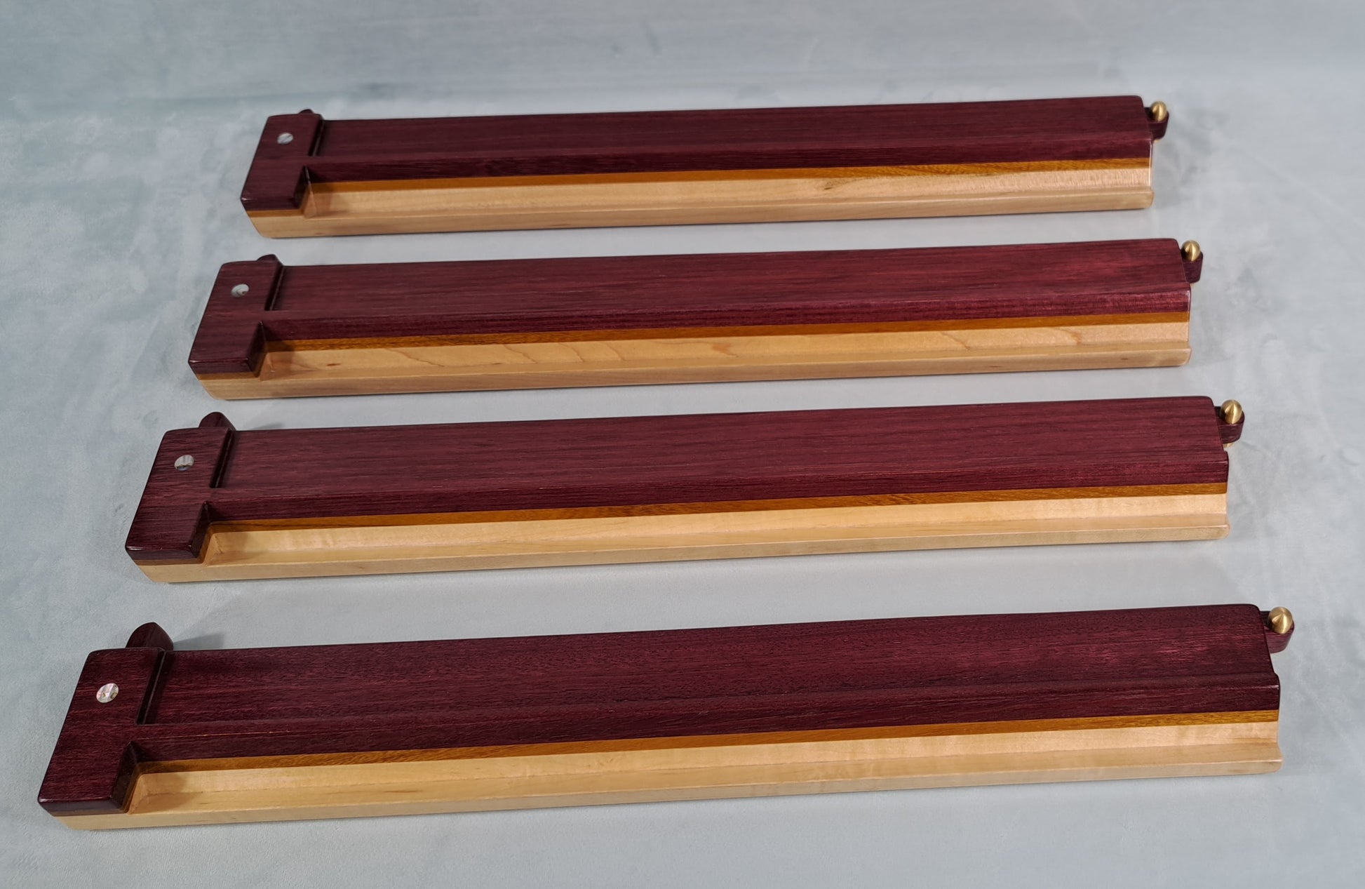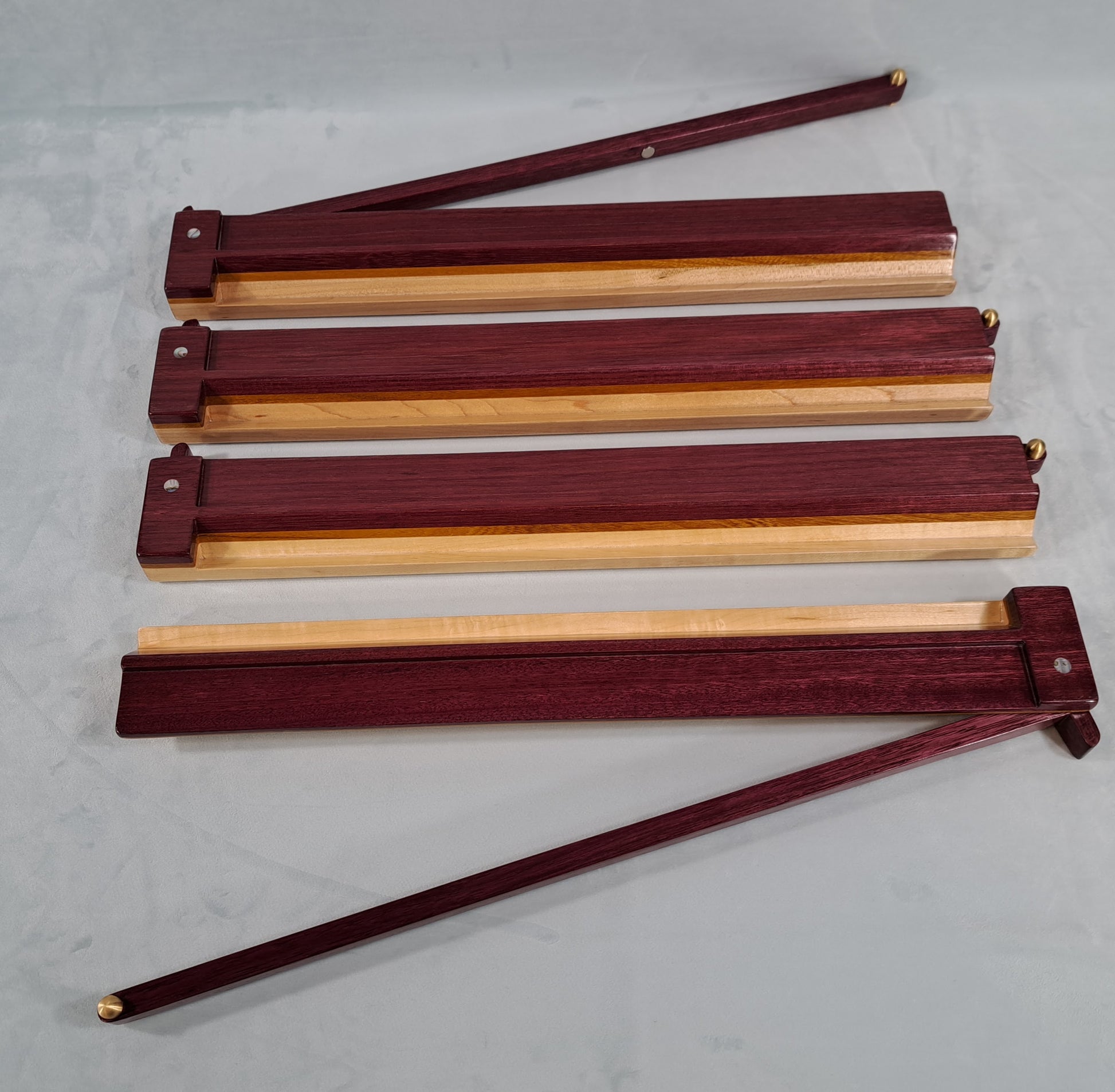 Mah Jongg Racks - Set of 4, Ashland Edition, Purpleheart, Canarywood and Maple with Floating Integrated Pushers.