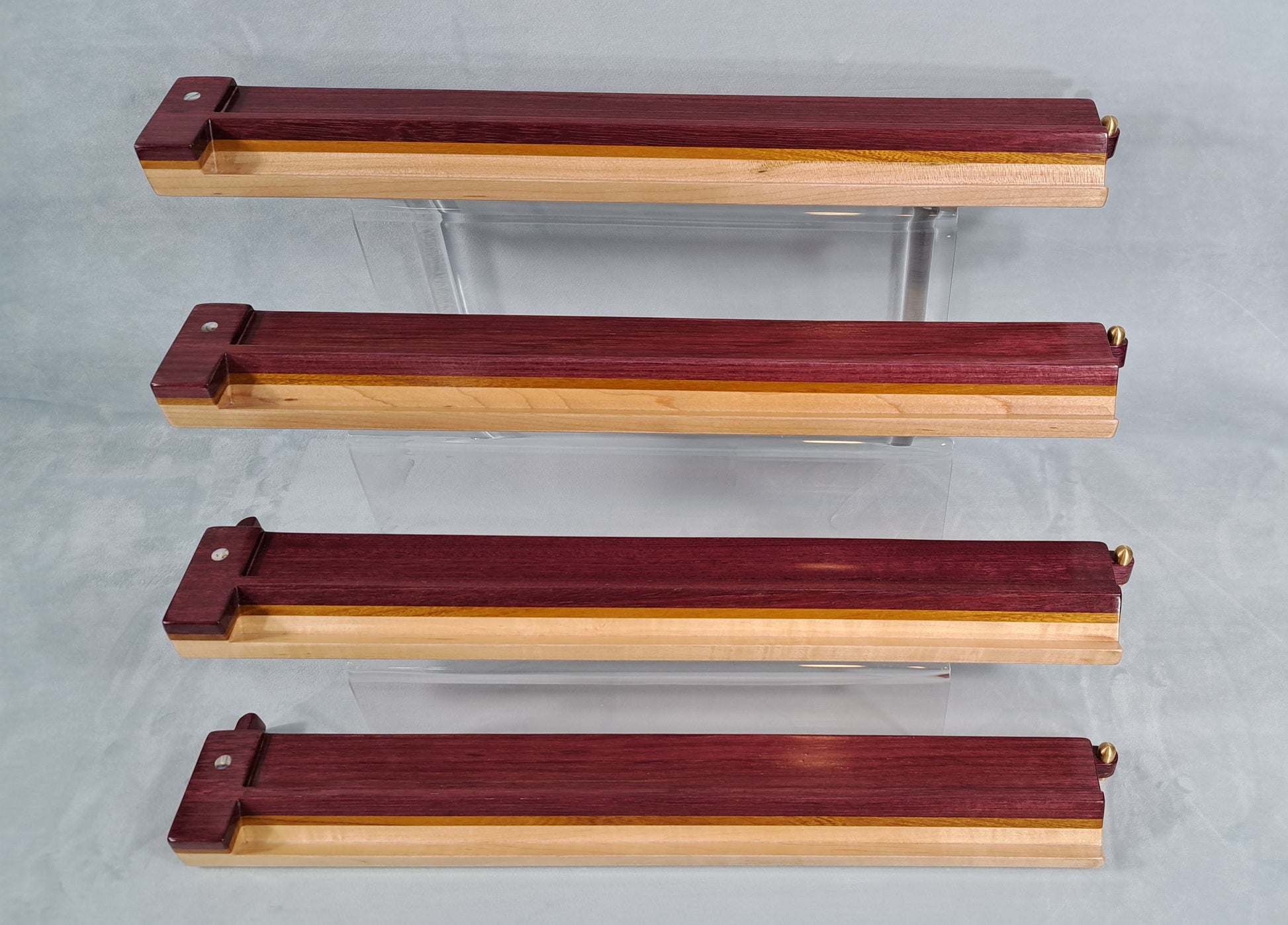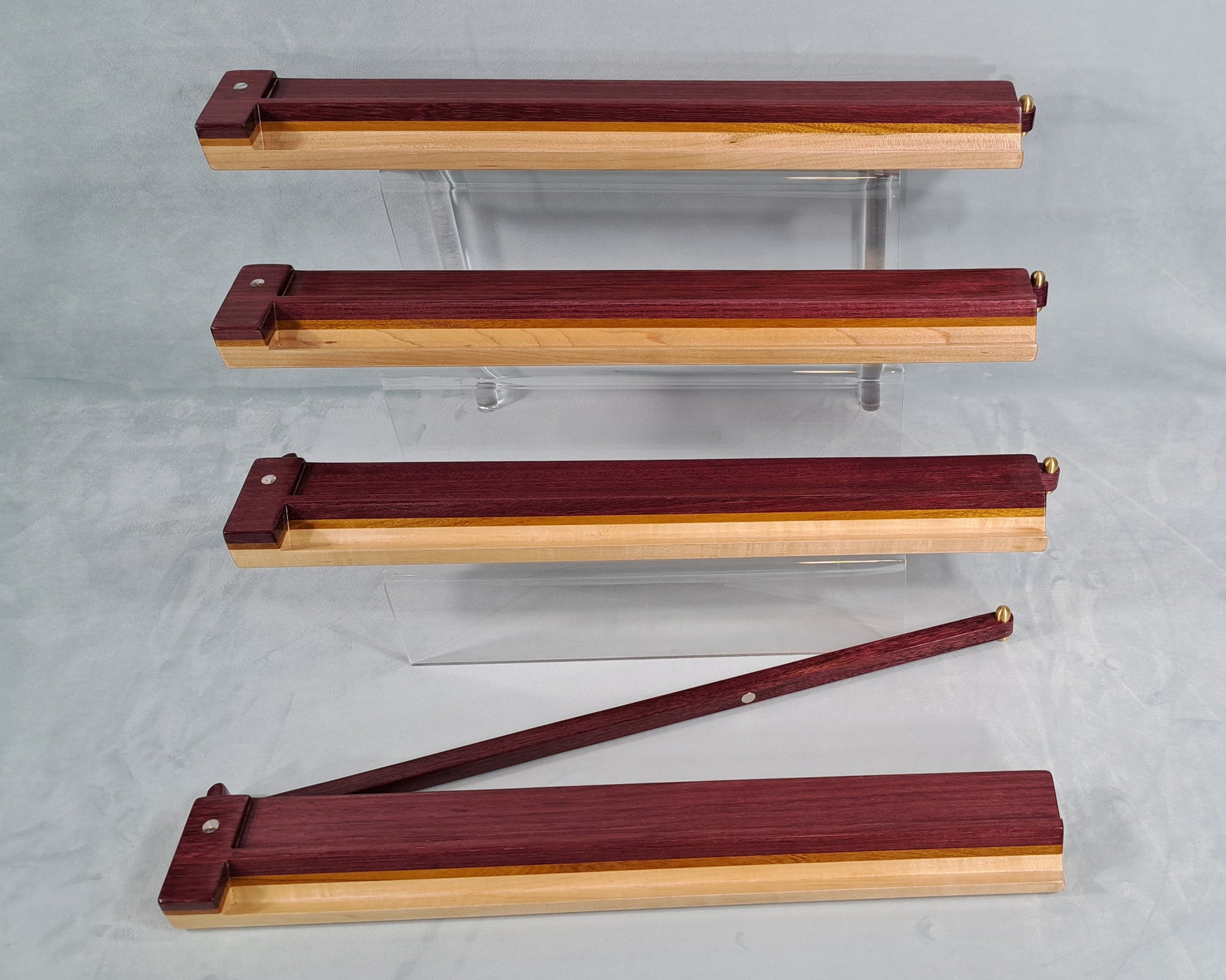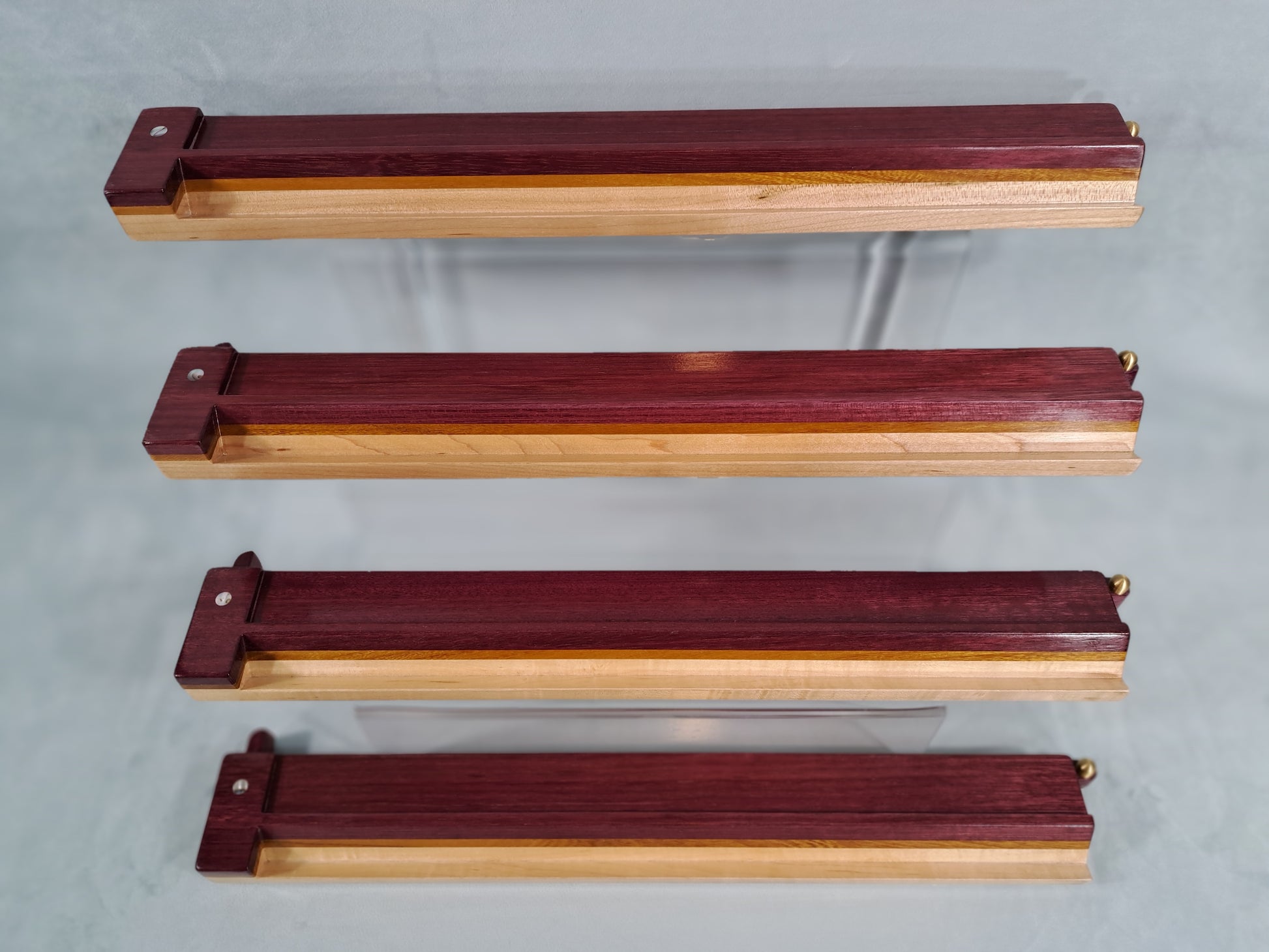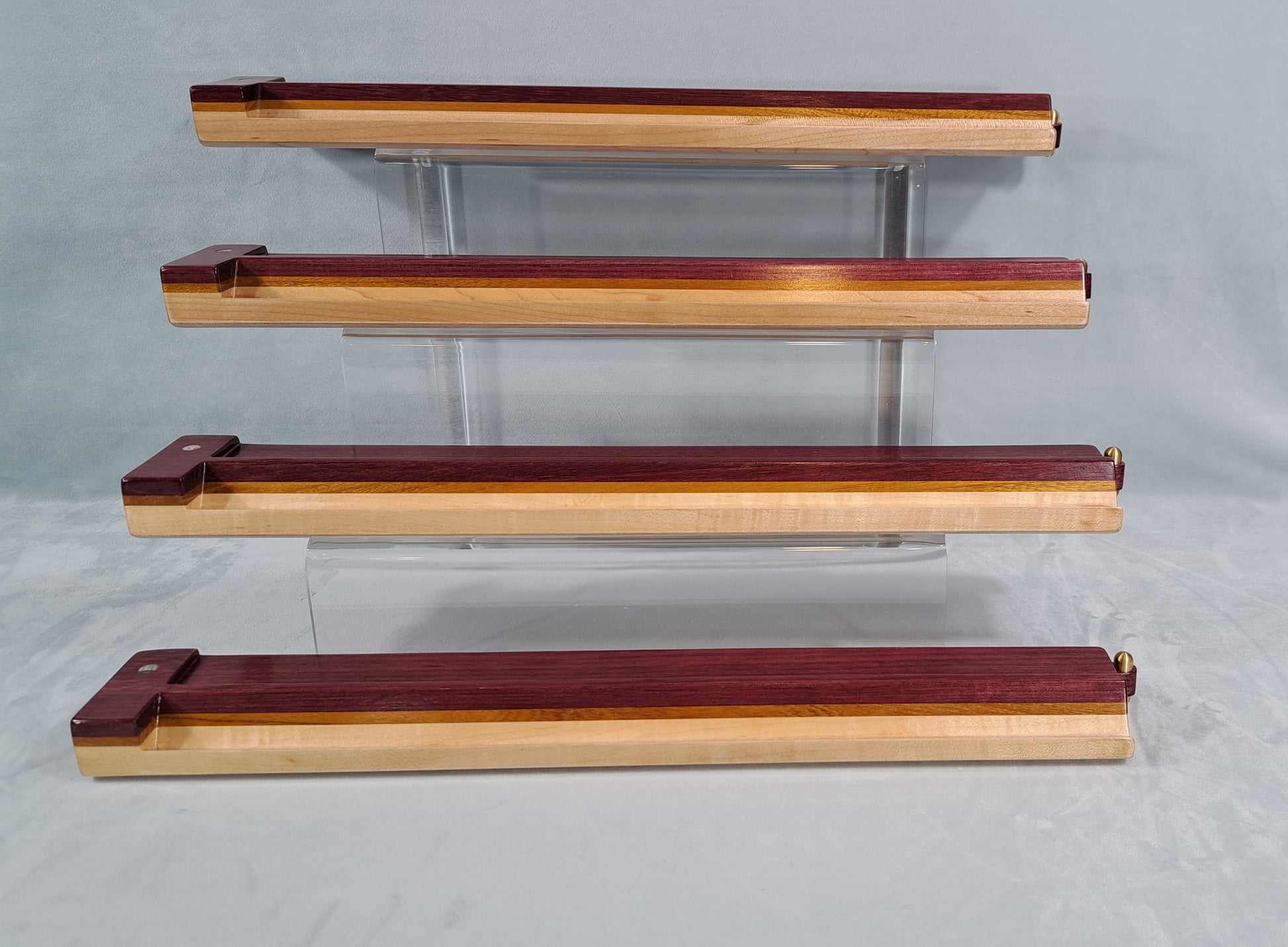 Mah Jongg Racks - Set of 4, Ashland Edition, Purpleheart, Canarywood and Maple with Floating Integrated Pushers.